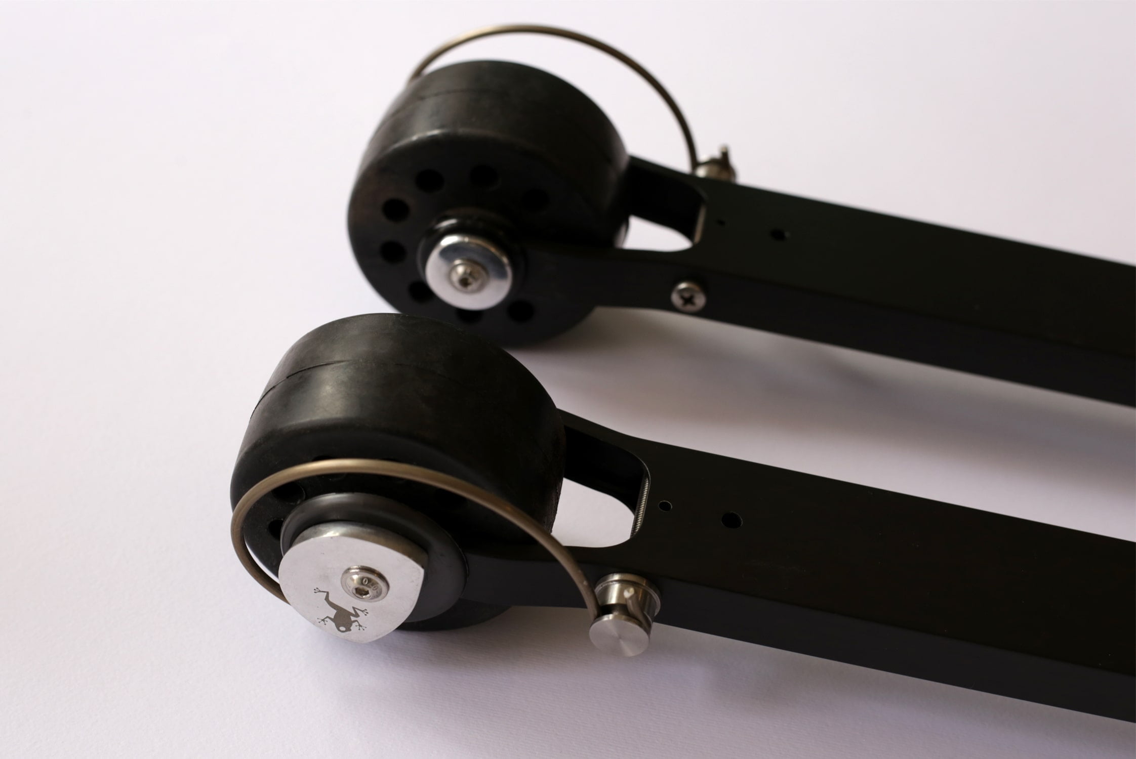 Quego Rollerskis feature an innovative wheel design that cancels rolling microvibrations, offering a smoother ride and reducing muscle fatigue. The solid wheel construction without holes enhances stability and control, while specialized channels prevent aquaplaning.